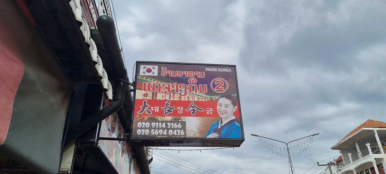 집사람이 한식을 먹고 싶단다. 오전에 버스 터미널을 찾는다고 돌아다니면서 <대장금>이란 상호의 한식당에 들러 터미널 위치를 물은 적이 있었는데, 그 식당을 찾아갔다. 간판에는 이영애의 사진이 크게 붙어있었다. 짜장면, 양장피까지 포함하여 50개가 넘는 메뉴가 있었다. 나는 제육볶음 덮밥, 집사람은 김치찌개를 주문했다. 막걸리는 5만 낍(4,500원), 소주는 4만 낍(3,600원)에 팔고 있었다. 종업원 두 사람은 모두 라오스 여자였는데, 사장이 한국인인지는 모르겠다. 맛은 그럭저럭 괜찮은 편이었다.