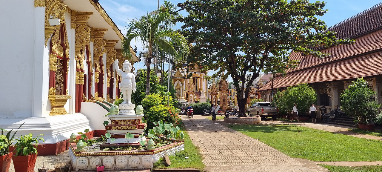 먼저 호텔 근처에 있는 왓루앙 사원으로 갔다. 캄보디아에서도 사원을 ‘왓’이라 했는데, 라오스도 사원을 ‘왓’으로 부르는 것 같다. 라오스는 불교 국가라 시내에 사찰이 많이 보인다. 왓루앙 사원은 팍세에서는 제일 큰 사원이라 한다.