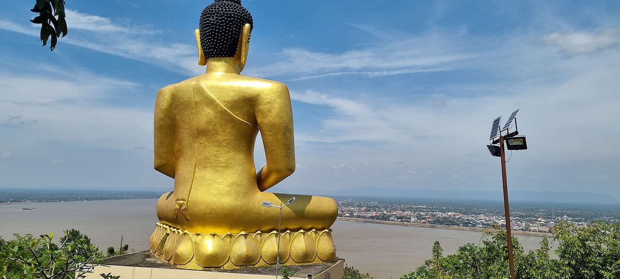황금 불상이 위치한 곳에 도착하였다. 메콩강을 내려다보면서 뒤쪽에는 수많은 작은 불상들이 열을 지어 앉아 있다. 강 쪽 언덕으로 조금 내려가면 거대한 좌불이 메콩강을 내려다보며 앉아 있다. 황금색으로 칠해진 이 불상은 플라스틱으로 만든 것처럼 보였으나, 만져보니 시멘트인 것 같기도 하고, 석회암인 것 같기도 하다.