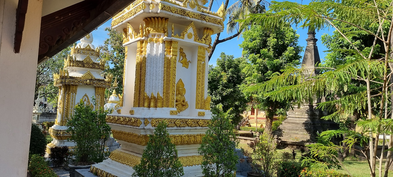 다음엔 씨 사켓 사원이다. 사원은 넓은 길에 접해 있는데, 그 넓은 길의 끝에는 넓고 좋은 건물이 자리하고 있다. 대통령궁이라 한다. 그런데 경비 요원은 거의 눈에 띄지 않는다. 씨 사켓 사원은 대통령궁 길 건너편에 있다. 비엔티안을 대표하는 사원이라 하는데, 요 며칠 동안 방문한 동남아의 다른 사원과 크게 차별화되는 것은 아니다. 다만 좀 더 화려하고 밝은 느낌이다.