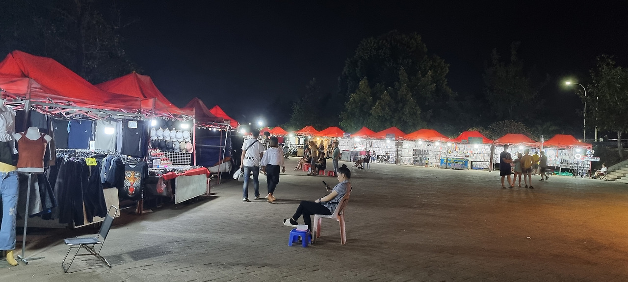 규모는 상당히 컸다. 캄보디아의 프놈펜에서도 메콩강 가에 위치한 야시장에 간 적이 있었지만 이곳 비엔티안의 야시장은 프놈펜 야시장의 몇 배가 되는 것 같았다. 도시 규모는 프놈펜이 훨씬 더 큰데 야시장만은 비엔티안이 압도적으로 더 크다. 메콩강 둑 아래 고수부지에는 새로 지은듯한 많은 고정형 상가건물이 깔끔하게 정돈되어 들어서 있다. 그런데 한두 곳만 문을 열고 나머지는 모두 닫은 채로 있다. 노점 중심의 야시장을 이곳 건물형 야시장으로 이전시키려는 공공기관의 정책이 아닌가 짐작해본다. 그렇지만 고객들은 기존의 야시장에만 몰리고 있다.