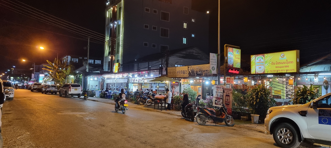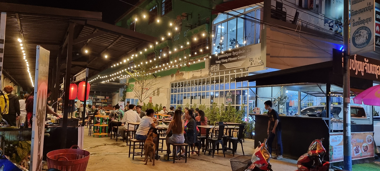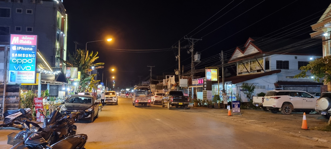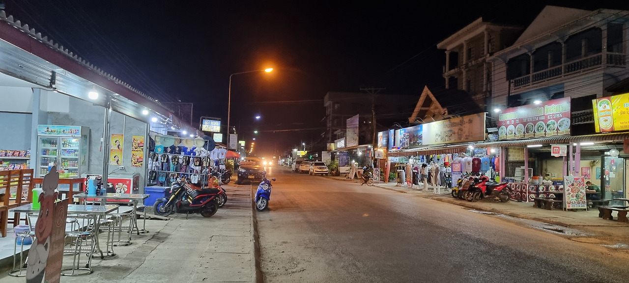 날이 어두워지자 식사도 할 겸 밤마실을 나갔다. 이곳은 전형적인 관광지로서 시엔립을 연상시킨다. 마을의 규모가 시엔립보다는 작으니 리틀 시엔립이라 해야 할까? 식당, 숙박업소, 마사지업소, 여행사 등의 가게가 이어진다. 음식과 마실 것을 파는 노점상들도 줄지어 있다. 그러나 거리를 오가는 관광객은 거의 보이지 않는다. 약간 붐비는 한두 곳을 제외한다면 손님이 있는 식당은 거의 없다. 이곳도 코로나의 직격탄을 맞은 것 같다. 이 정도 규모의 관광촌이라면 하루 수천 명, 아니 몇만 명의 관광객이 방문해야 정상적으로 굴러갈 것 같은데, 지금은 몇백 명 정도에 불과한 것 같다.