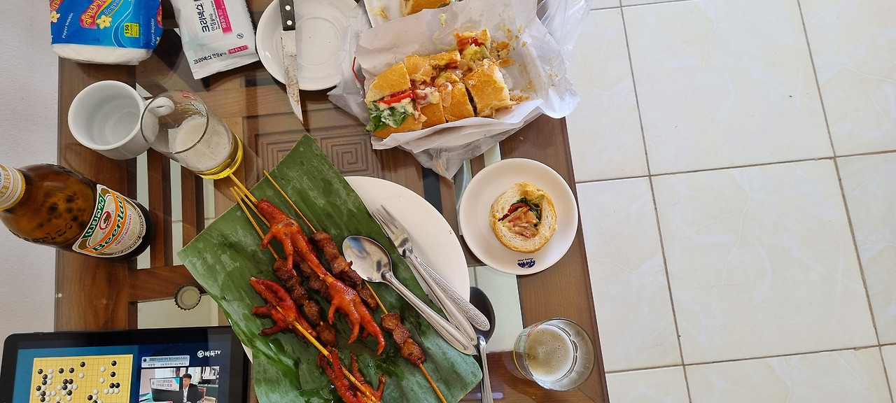 사 온 음식으로 호텔 방에서 점심을 먹으며 라오 맥주도 한 병 마셨다. 햇빛이 좀 누그러지는 시간에 나가기로 하고 삼성화재 배 바둑대회 최정과 중국의 양등신과의 8강전 중계방송을 보았다. 최정이 일방적으로 밀릴 것이라 생각했는데, 예상외로 선전하고 있다. 근소하나마 우세를 견지하고 있다. 누워서 유튜브를 통해 바둑 중계를 보고 있자니 좀 전에 마신 맥주 탓인지 잠이 쏟아진다. 일어나니 오후 4시가 넘었다.