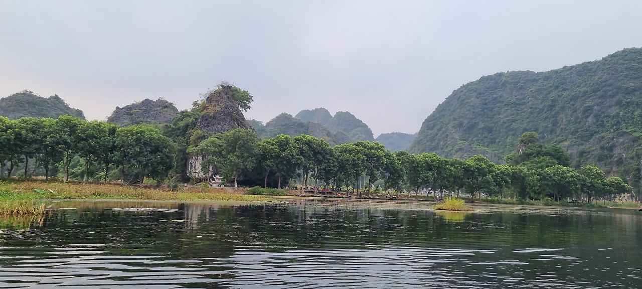 마을을 벗어나니 보트는 산과 산 사이에 있는 넓은 습지를 통과한다. 보트가 다니는 물길 양쪽에는 벼가 자라고 있다. 이곳 물길도 이전에는 논이었을지도 모른다. 이곳 닌빈의 산들은 중국 계림의 산들과 비슷한 모습을 하고 있다. 베트남의 하롱베이를 "바다의 계림"이라 부른다. 그리고 이곳 닌빈을 "땅 위의 하롱베이"라 부른다. 그러니까 결국 계림=닌빈인 셈이다. 그런데 나는 계림에 가보지 못했지만 계림이 마무리 좋다지만 닌빈 만 할까 하는 생각이다.