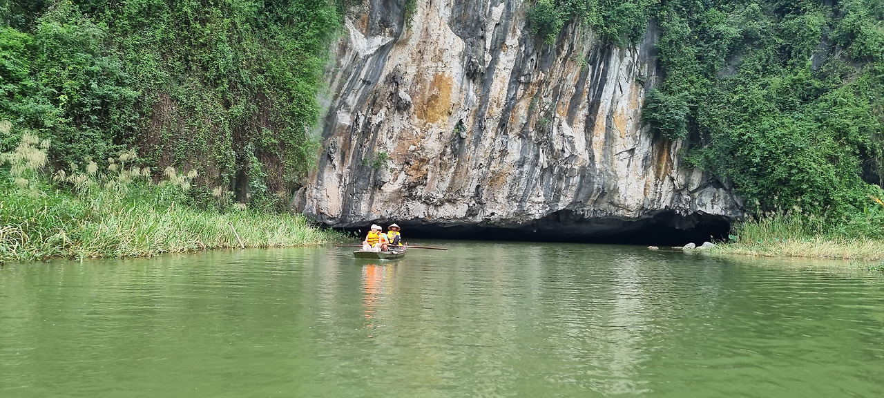 산 아래로 물길이 지나간다. 이곳은 석회암 지역이라 바위가 물에 녹아 자연적으로 물의 터널이 생긴 곳이 많다. 이곳뿐만 아니라 베트남의 많은 지역에서 이러한 물의 터널을 발견할 수 있다. 첫 번째 터널로 들어선다. 마주오는 보트의 승객들이 터트리는 카메라 플러시가 이곳저곳에서 번쩍이며 동굴의 어둠을 밝혀준다. 머리 위로 돌고드름이 지나간다. 뱃사공이 주의하여 안전한 코스로 가지만 그래도 머리를 조심해야 한다.