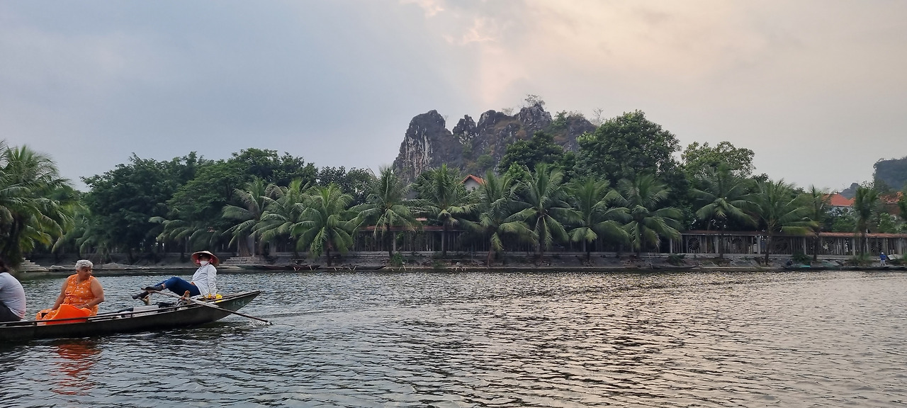 방에서 쉬다가 오후 3시가 넘어서 밖으로 나왔다. 마침 날씨가 흐려 보트 관광에 딱 좋은 날씨다. 이곳은 짱안과 함께 보트 관광의 명소다. 지난번에 왔을 때 항무아 전망대에서 내려다보았던 절경이 바로 이곳 땀꼭의 보트 관광 코스이다. 사공이 노를 젓는 작은 보트에 관광객 2-3명을 태우고 약 두 시간 관광하는 프로그램이다.