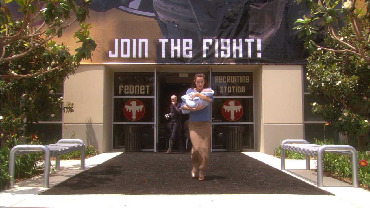 지구 군은 몇 사람의 희생자가 생기기는 했지만 드디어 조그만 기지로 이동하는 데 성공했다. 그곳에는 겁에 질린 지구군 장성급 장교 한 명도 숨어있었다. 기지 안으로 몸을 피한 지구 군은 모두 10여 명 정도에 불과하다.