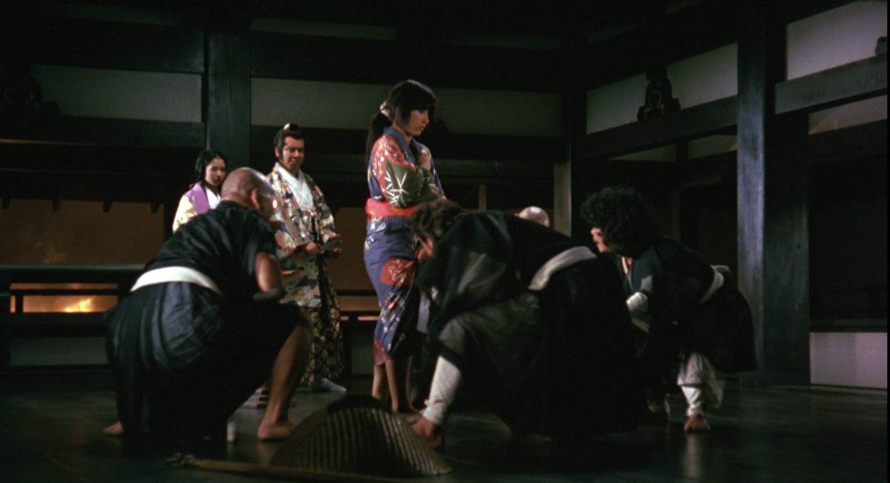 카신이 생각해 낸 방법은 ‘음석’(淫石)을 만든다는 계책이었다. 음석이란 어떤 여자의 마음도 음란하게 만드는 최음제였다. 음석은 가신의 부하들인 7인의 닌자승이 여자들을 강제로 범하는 방법을 통해 만들어 낸다. 이 계략의 끔찍함에 그 자리에 있던 야규 신사에몬(柳生新左衛門)은 전율한다.