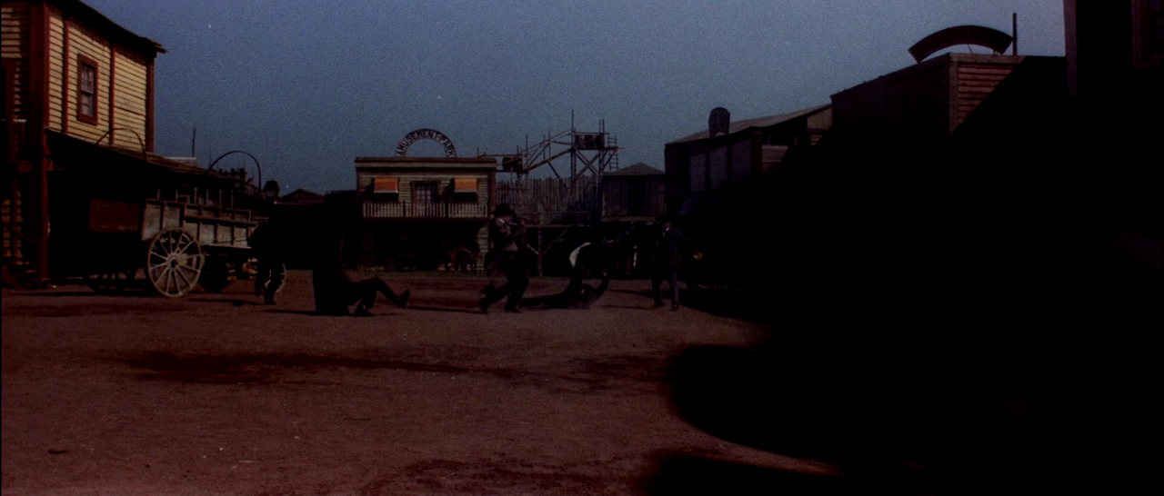 어느 날 마을에 서커스단이 찾아와 공연을 펼치고 있다. 공연 중에서도 총싸움(gun-fight) 쇼가 가장 큰 인기다. 이 쇼를 구경하고 있던 술집 주인 크라이드의 안색이 변한다. 쇼의 주인공이 바로 그의 군대 시절의 상관인 사바타 소령(리 밴 클리프)이었던 것이다. 그는 군대 시절 포커를 하다가 사바타에게 5천 불을 빚진 적이 있다.