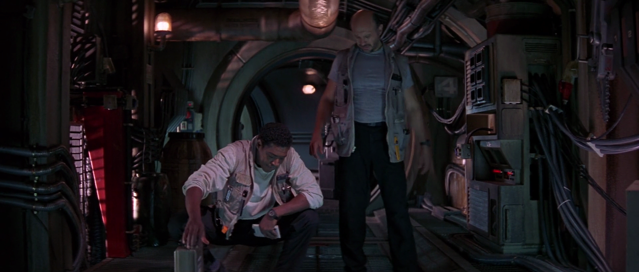 윌 리가 리바이어든 호 속으로 들어가자 식스팩이 금고를 가지고 있었다. 금고를 잠수정에 끌어올려 조사를 해보니 선원의 기록이 발견되었다. 거기에는 전원 병사(病死)라고 쓰여 있었다. 비디오가 있어 그것을 재생해 보니, 선내에 열병이 발생하였다는 내용이었다. 그때 식스백이 1인용 위스키 병을 발견하여 주머니에 감추었다. 그 후 톰슨 박사와 벡크가 윌리의 카메라 영상을 검증해 보았다. 그러자 배를 침몰 원인으로 보이는 선체에 생긴 큰 구멍을 발견하였다. 식스백이 침대에서 병에 든 위스키를 마시고 있는데, 보먼이 찾아와 둘은 함께 술은 마신다.