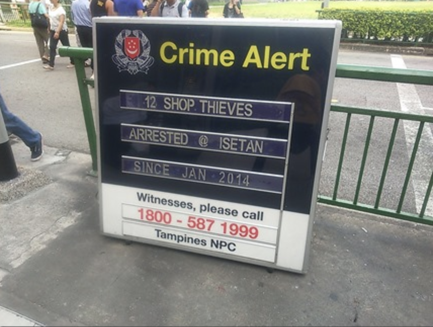 싱가포르는 전 세계적으로 10위 안에 들 정도로 치안이 매우 좋은 나라중 하나죠. 그러나 싱가포르도 집 털이 하는 사람들이 있고, 가게에서 몰래 훔쳐가는 사람들도 있습니다. 이렇게 집이 한 번 털릴 때면 싱가포르에서도 경고 판을 붙여둡니다.