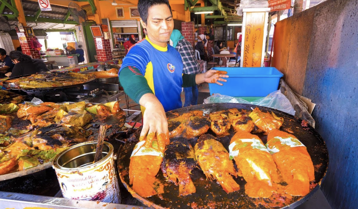말레이시아의 길거리에서 파는 생선 구이