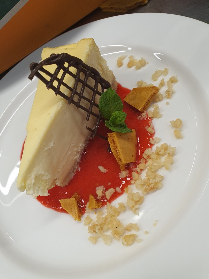 메인 디저트는 딸기 컴포트를 올린 치즈케이크와 브라우니였다.