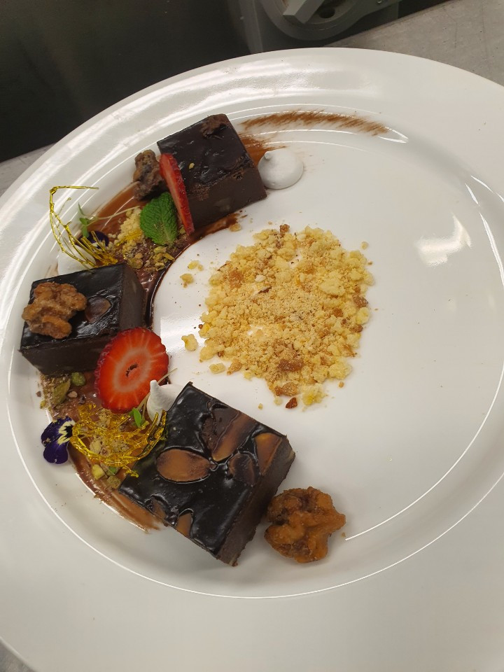가니쉬로 올라가는 설탕 데코레이션은 쉽게 잘 부서지기 때문에 애기 다루듯 조심스럽게 올리고, 하나하나 정성 들여 신속하게 음식을 내보냈다.