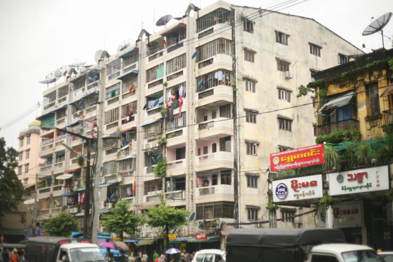 한적한 공원을 빠져나와 다시금 양곤의 도심으로 향했다. 한 번 걸어본 길이라고 조금은 여유가 생겨 이리저리 눈길을 돌려봤다. 아파트라고 해야 할까 빌라라고 해야 할까. 아무튼 많은 수의 미얀마인의 삶을 지탱해주고 있을 건물에는 빨래가 한가득 널려있었다.