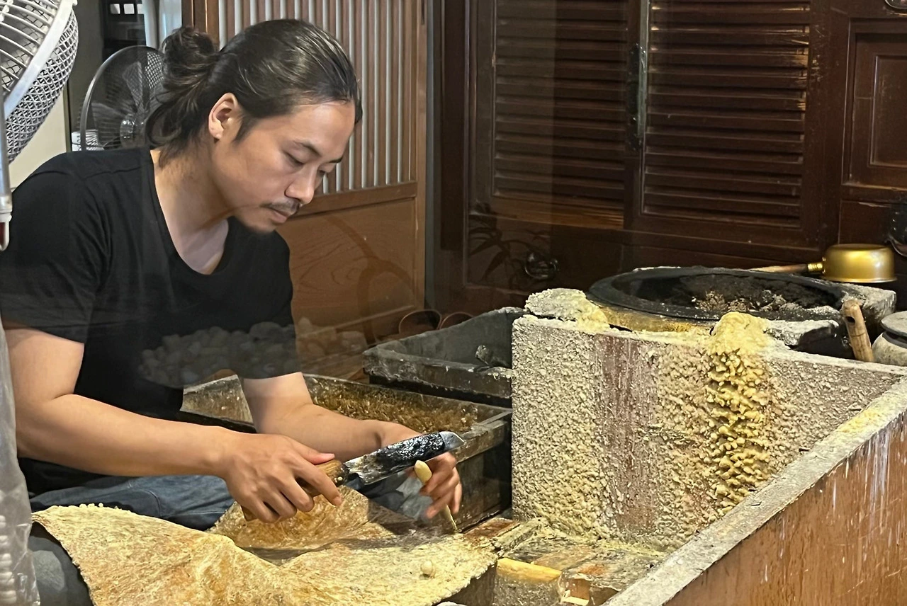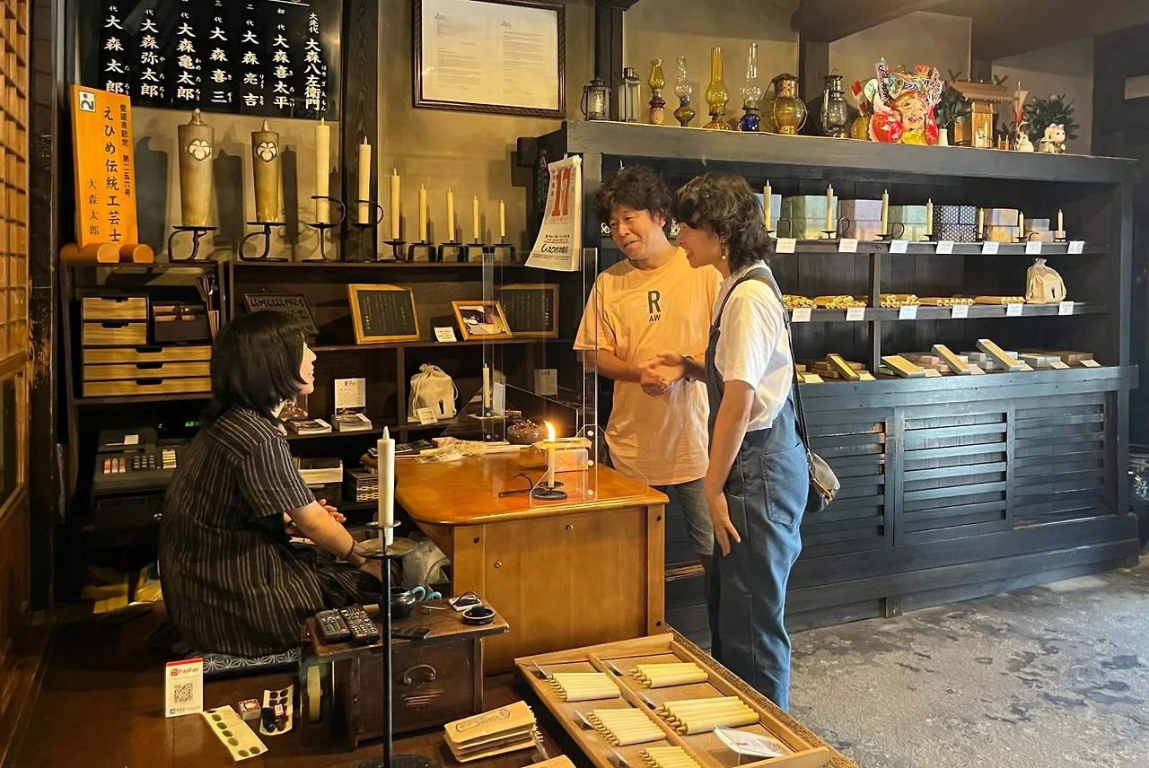 옛 방식 대로 목랍 양초를 만드는 오모리 와로소쿠(大森和蠟燭屋).
