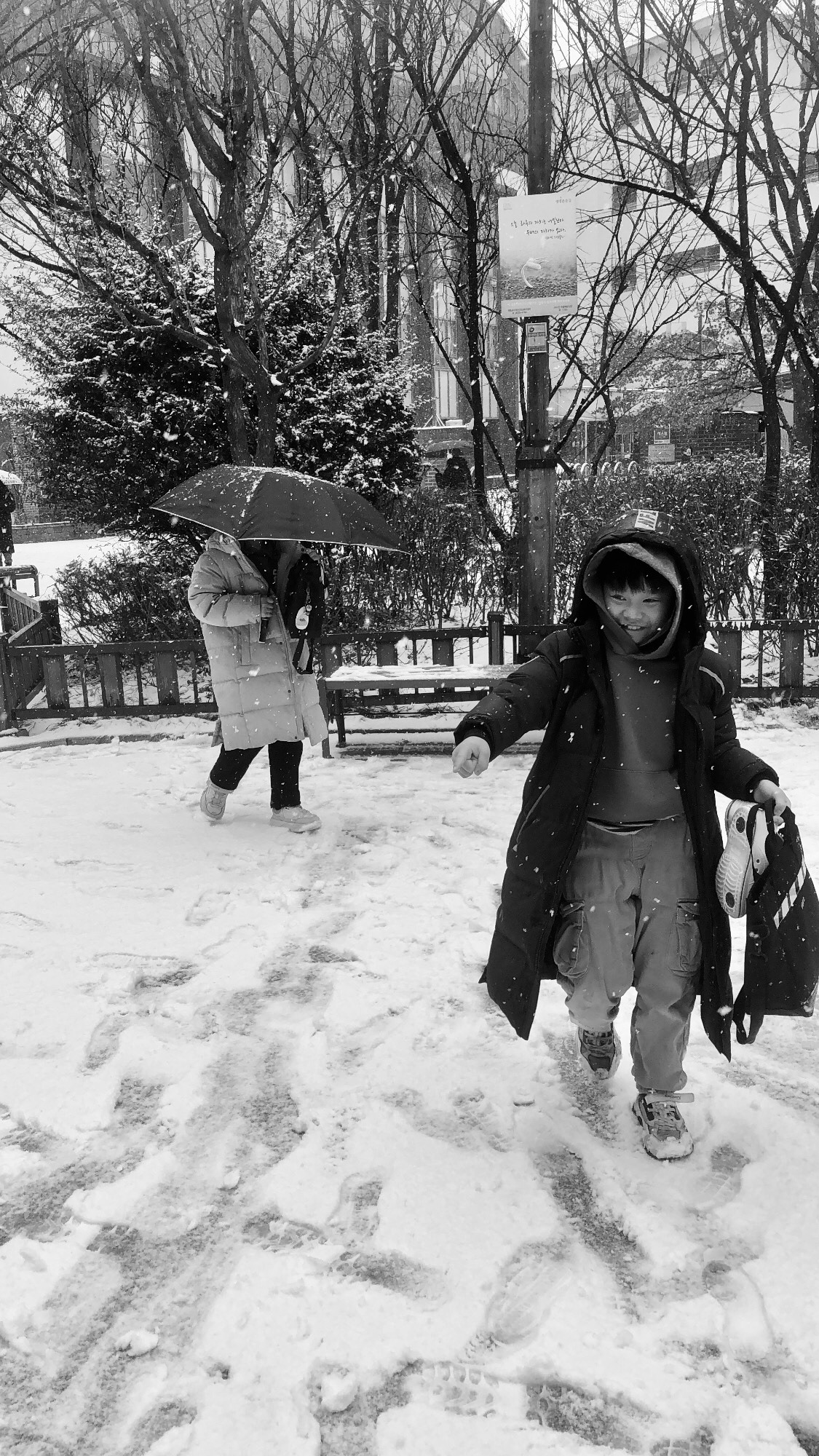 멀리서도 새하얀 눈밭에 벌겋게 언 손이 빛난다.