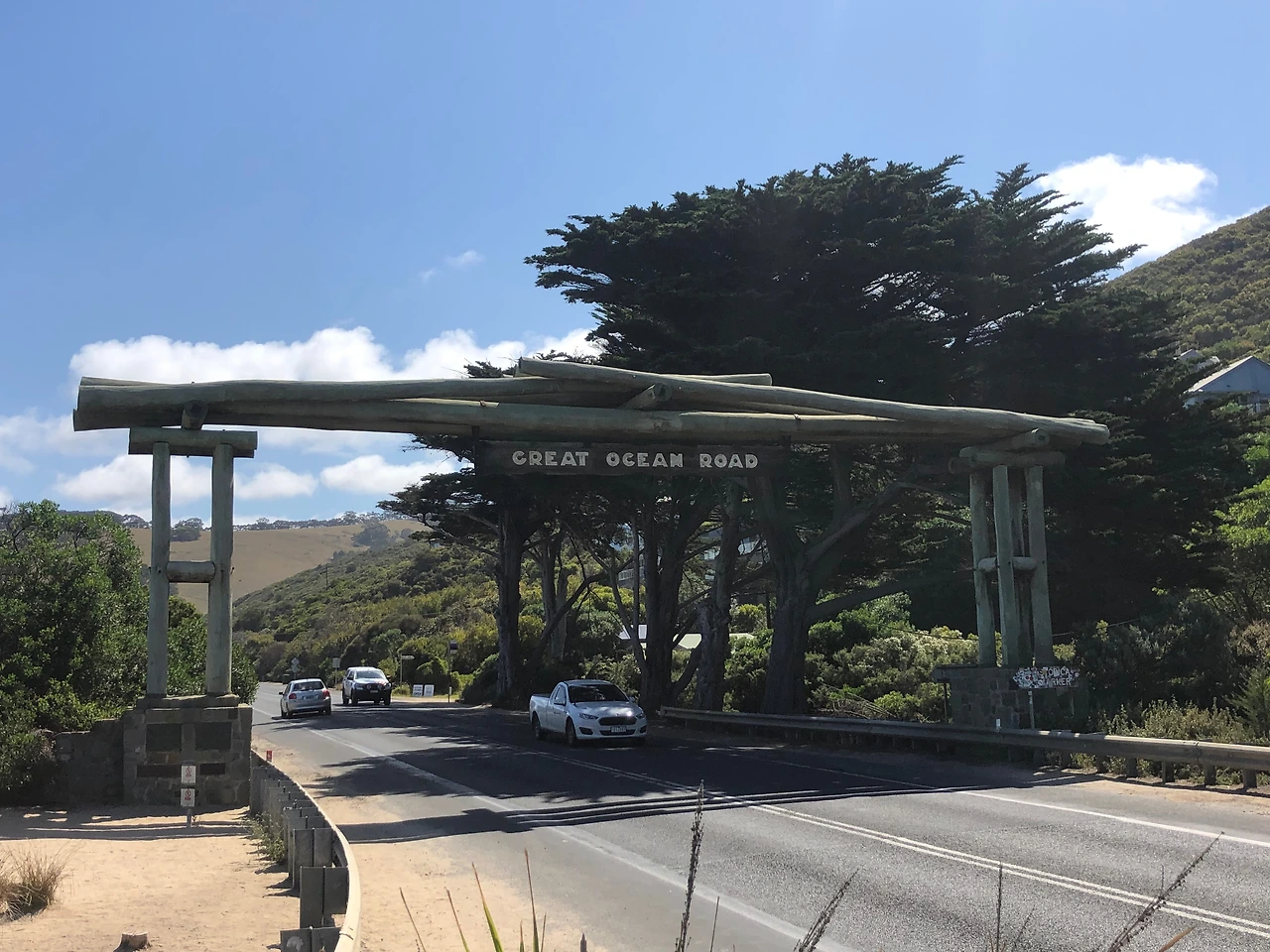 그렇게 길이 익숙해지기를 넘어 지루해졌을 때쯤 드디어 그 유명한 그레이트 오션로드 입구, 메모리얼 아치가 보였다.