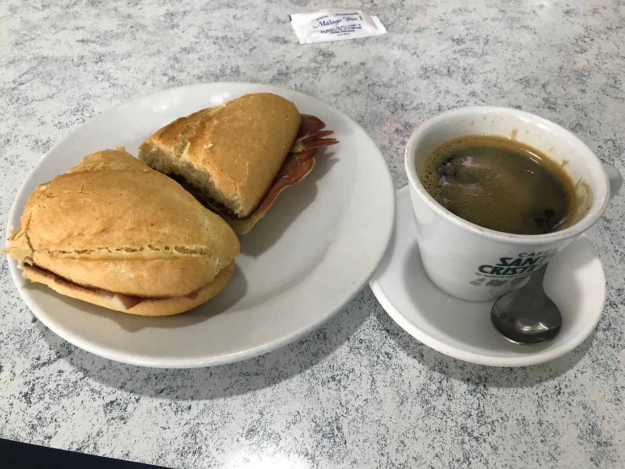 이탈리아 기차 1등석에서 준 커피와 간식, 스페인 버스터미널에서 대충 아침으로 먹은 커피와 뻑뻑한 빵. 맛없어도 다시 먹고 싶은 커피들.