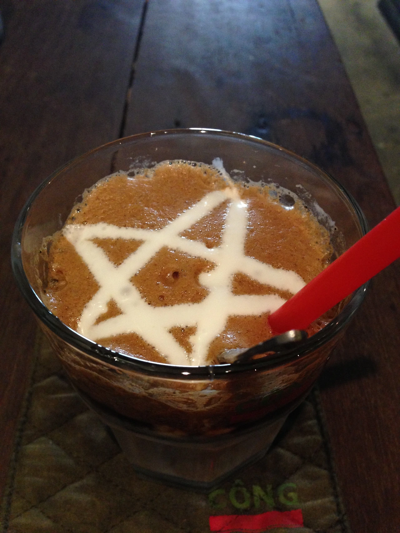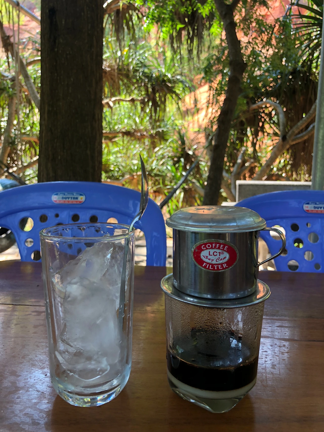 콩카페도 좋지만 베트남 커피의 묘미는 필터 그대로 주는 커피와 잔 아래에 깔린 연유, 덩어리 얼음이 합쳐진 강렬한 맛이다