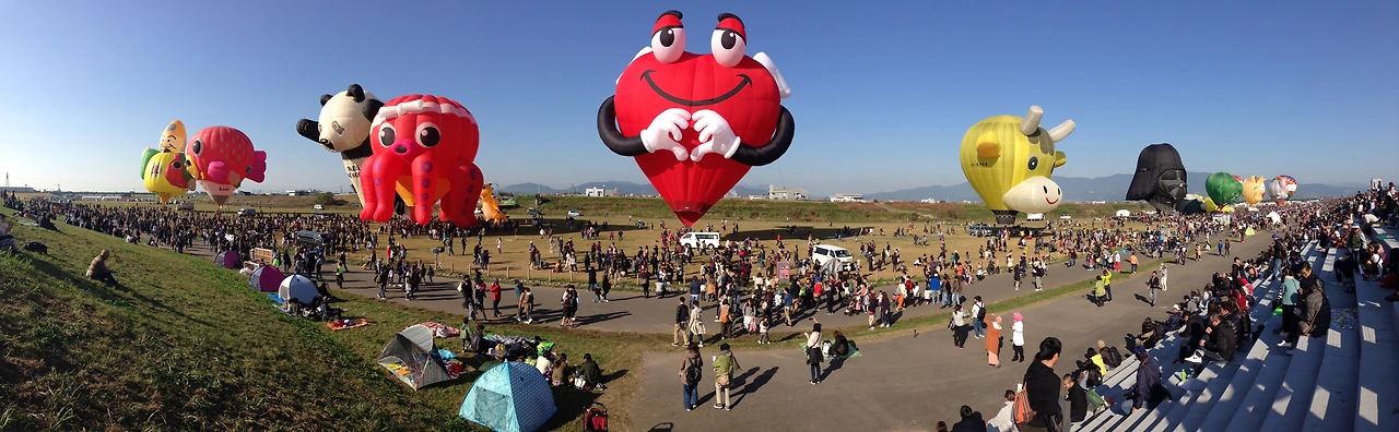 100기 이상의 열기구팀이 참여하는 세계 최대 규모의 열기구 국제대회다. 수많은 열기구가 푸른 하늘 위로 한꺼번에 솟아오르는 장면이 압권이다. 인기 캐릭터 모양의 벌룬이 전시되는 벌룬 판타지아도 있고, 어둠 속에서 음악에 맞춰 열기구의 불을 뿜어 반짝거리는 캐릭터 벌룬을 볼 수 있는 야간계류도 펼쳐진다. 많은 방문객이 찾는 행사이기 때문에 논밭 한가운데 벌룬사가역이라는 임시역을 설치해서 축제 동안 행사장으로 바로 연결되는 기차가 다닌다.