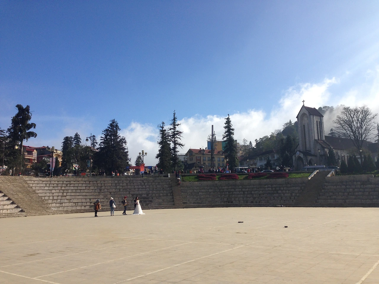 버스에서 내렸더니 사파 광장이 한눈에 보인다.