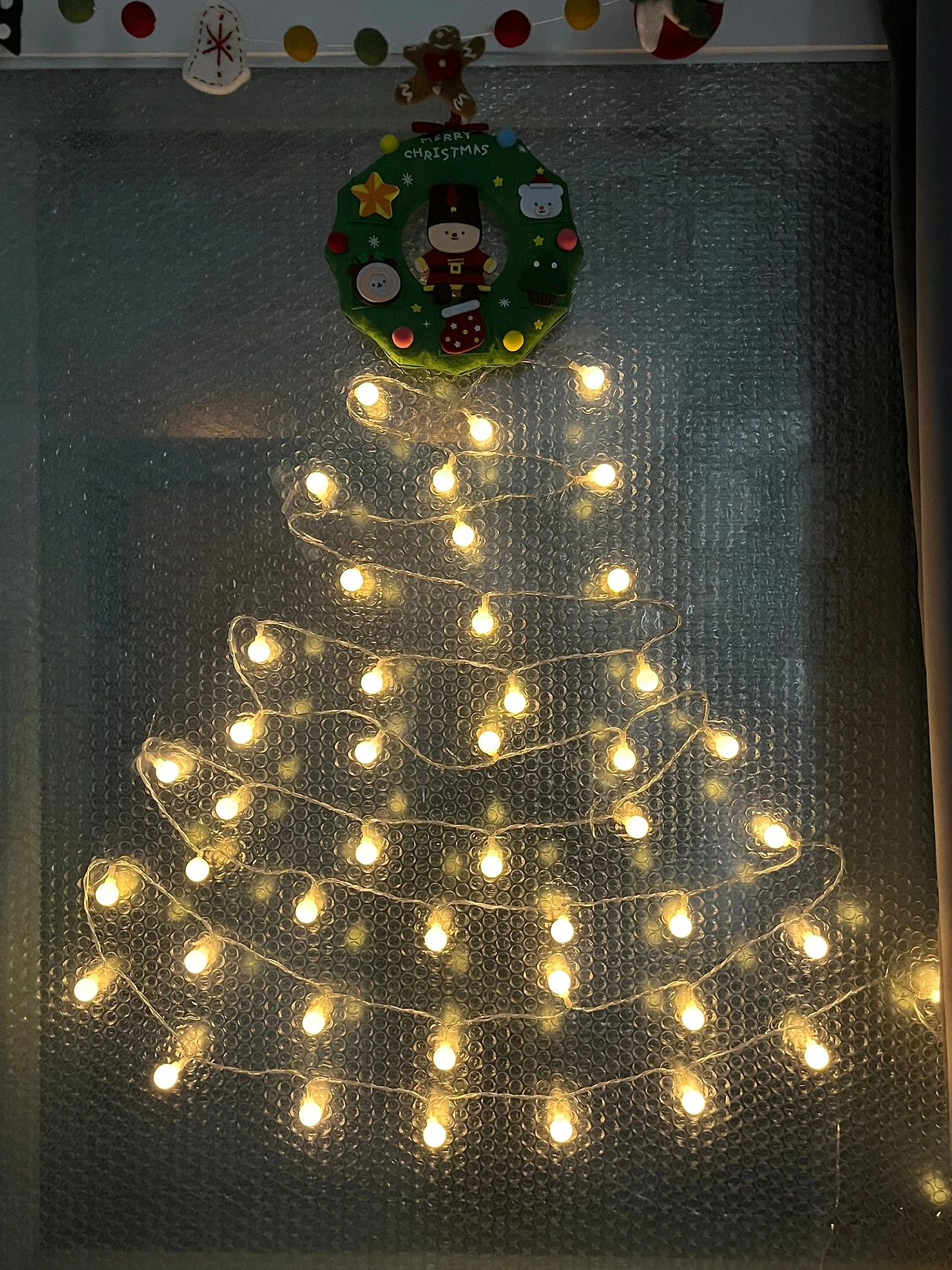 밑그림?이 없어서 그런지 생각보다 반듯한 모양 만들기가 쉽지 않다. 말벌 아저씨 마냥 뛰어다니면서 멀리서 보고 다시 붙이고를 반복해서 완성했다. 그래도 밤에 켜두면 기부니 조크든요?