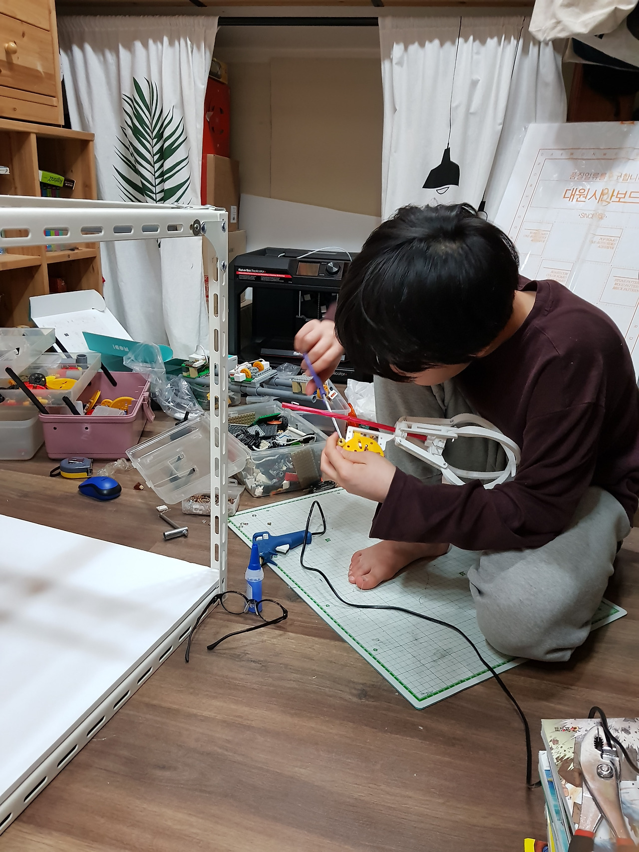 사실 만들기 전만 해도 쓸데없다 생각했던 이 로봇은 준규 스스로도 만든 후 가장 뿌듯해 한 로봇이었습니다. 그런데 아이가 이 로봇을 만들기 위해 청계천에 가서 아크릴이나 PVC같은 재료를 알아보고 외형을 만들고, 레일이 움직이는 원리를 고민하고, 인형집게를 구동시키는 원리들을 연구하며 영상을 찾아보며 고민하는 과정들을 보며 저의 시선도 달라지기 시작했습니다.
