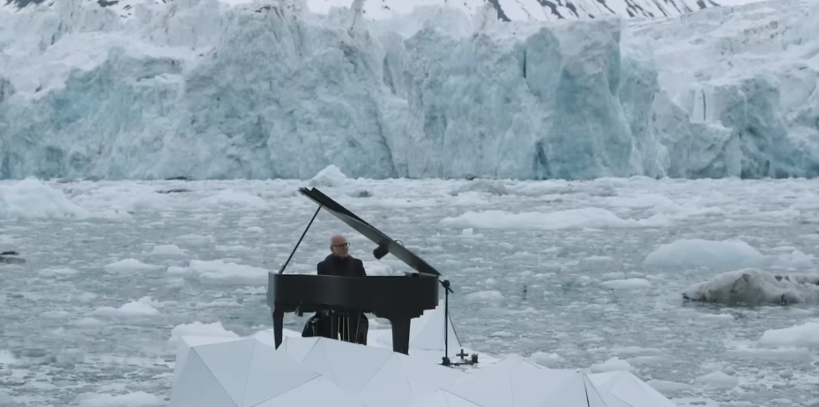 2016년 6월 20일 환경단체 그린피스(Green Peace)가 노르웨이 스발바르제도의 웰렌버그브렌 빙하에서 연 행사가 있었어요. 이탈리아 출신의 세계적인 작곡가 겸 피아니스트 루도비코 에이나우디가 자작곡 ‘북극을 위한 비가(Elegy for the Arctic)’를 연주했지요. 연주하는 동안에도 빙하는 실시간으로 조각이 나서 물 위로 떨어집니다.