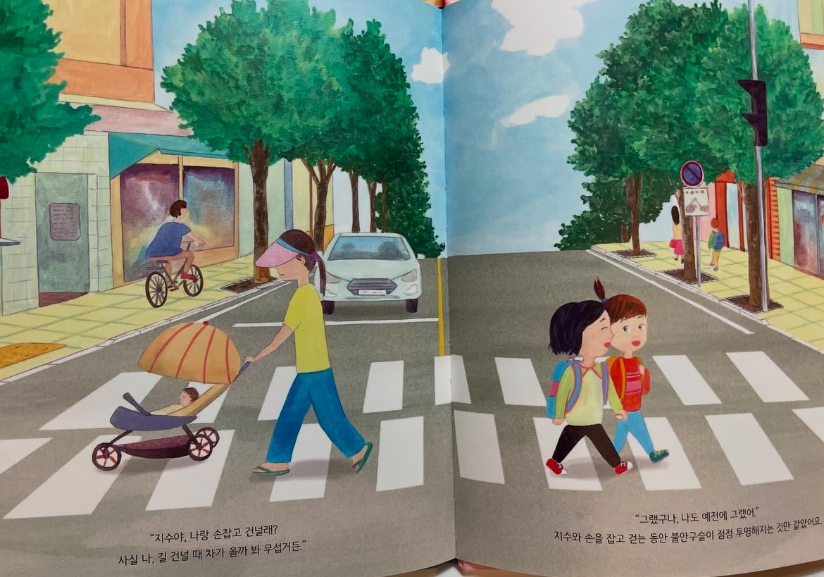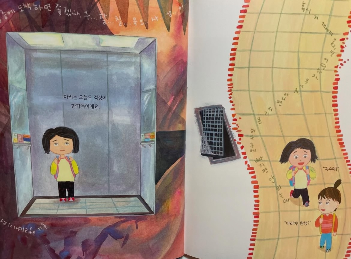 며칠 뒤, 학교 가는 길에 아리는 친구 지수를 만납니다.