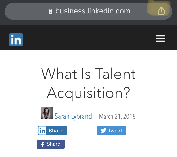 가령 내가 Talent Acquisition에 관련된 좋은 아티클을 발견하게 된다면, 그 페이지를 찾아 아래와 같이 포켓에 저장하고 나중에 포켓 앱에서 필요할 때마다 찾아서 읽으면 그만이다!