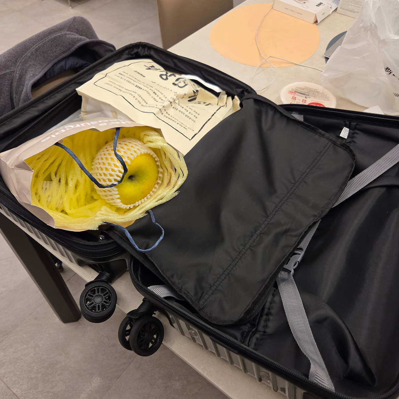 운전을 싫어하는 남편에게 사과를 가지러 가자고 하면 마지못해 가겠지만, 난 그 '마지못해'를 견디는 것이 너무나 불편한 사람이다. 그렇다고 내가 차를 쓰는 건 남편이 못마땅해 할 것 같아서 다른 방법을 고민했다. 그리고 생각해낸 방법이 여행용 캐리어를 끌고 가 캐리어에 사과를 담아서 지하철로 가져오는 방법이었다. 쇼핑카트를 끌고 갈까도 생각했지만, 쇼핑카트를 끌고 지하철을 타는 건 너무 폼(누가 본다고?)이 안날 거 같아서 캐리어를 가져가기로 했다.