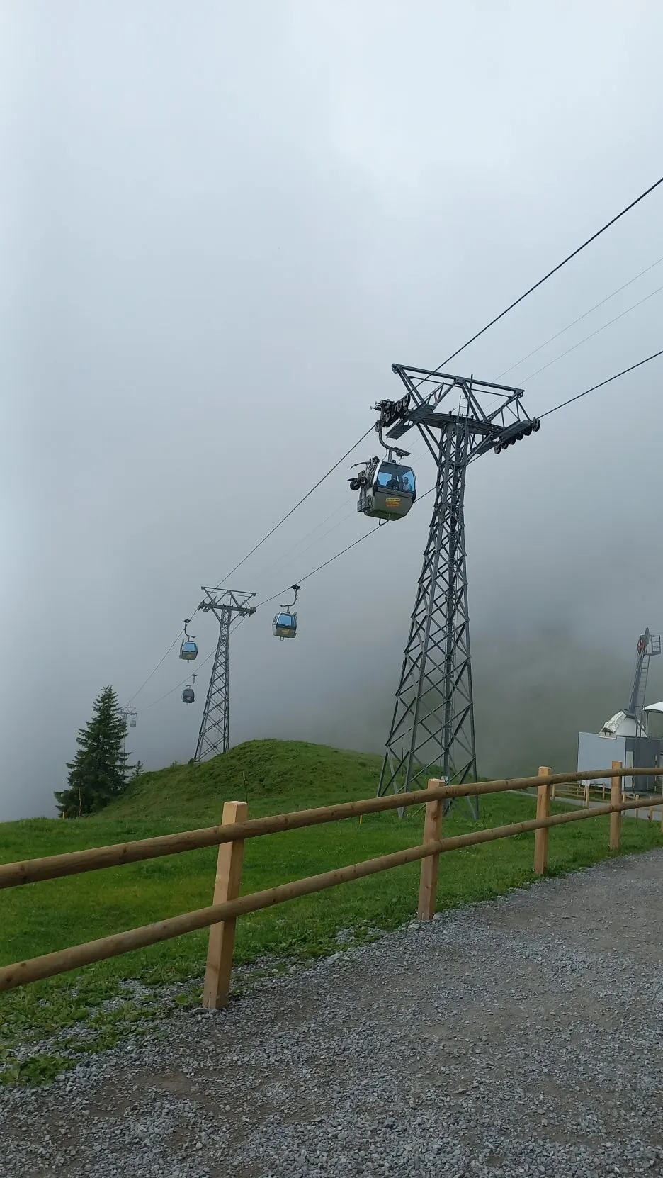 피르스트에 가기 위해서 우선 기차를 타고 그린덴발트로 갔다. 그린덴발트는 인터라켄보다 산이 훨씬 가까이 보였다. 그린덜발트를 잠깐 돌아보고 피르스트로 가는 곤돌라를 타러 갔다. 피르스트 정상까지는 곤돌라를 타고 25분을 올라가야 했다. 곤돌라 25분은 보통의 기차나 버스 25분과는 체감되는 시간이 달랐다. 더욱이 구름이 잔뜩 끼어 아무것도 보이지 않는 곤돌라 안에서의 25분은 무척 길게 느껴졌다.