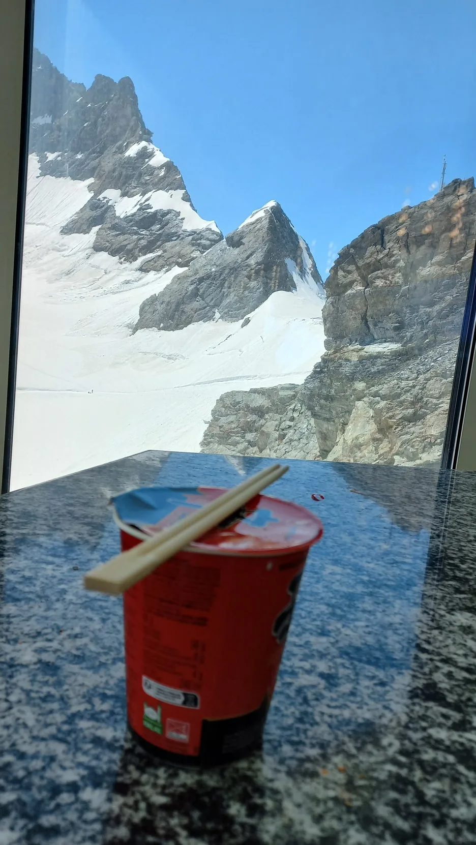 융프라우에서 또 기대되는 한가지, 신라면을 먹으러 갔다. 이곳에서 감동적인 라면 맛을 경험하기 위해 그동안 한국에서 싸가지고 온 라면도 먹지 않았었다. 그래서 라면 맛은? 그냥 라면 맛이었다. 그렇게 감동적이지는 않았다. 게다가 고산병까지는 아니어도 머리가 아프기 시작해서 급하게 먹고 내려왔다. 그런데 그게 문제였던 것 같다.