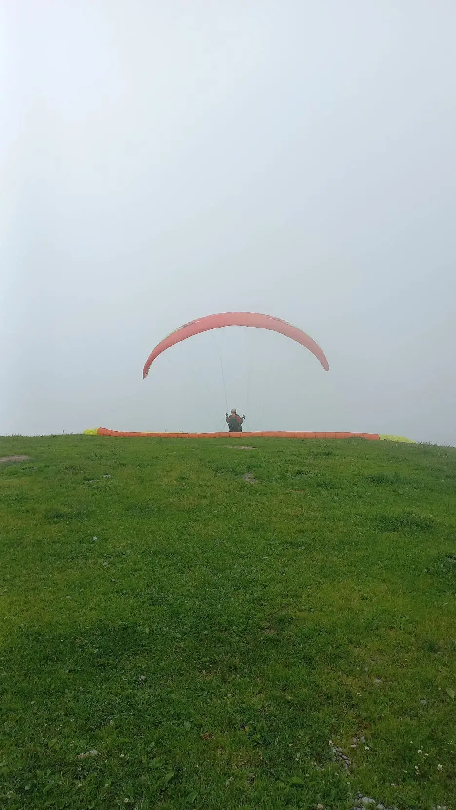 산악카트를 타기 위해 중간 정거장인 쉬렉펠트에서 내렸다. 그 멋지다는 피르스트가 구름 때문에 아무 것도 보이지 않았고 비까지 간간히 뿌려 공기도 무척 차가웠다. 달달 떨면서 구름 속을 날으는 패러글라이딩을 구경하며 한시간쯤 기다려야 했다. 기다리는 게 지루해질 때 쯤 웅성거리는 소리가 들렸다. 직원이 가리키는 곳을 보니 눈사태가 나서 산을 타고 눈이 쏟아져 내리고 있는게 보였다. 한 여름에 눈사태라니 스위스에서만 볼 수 있는 장관이었다.
