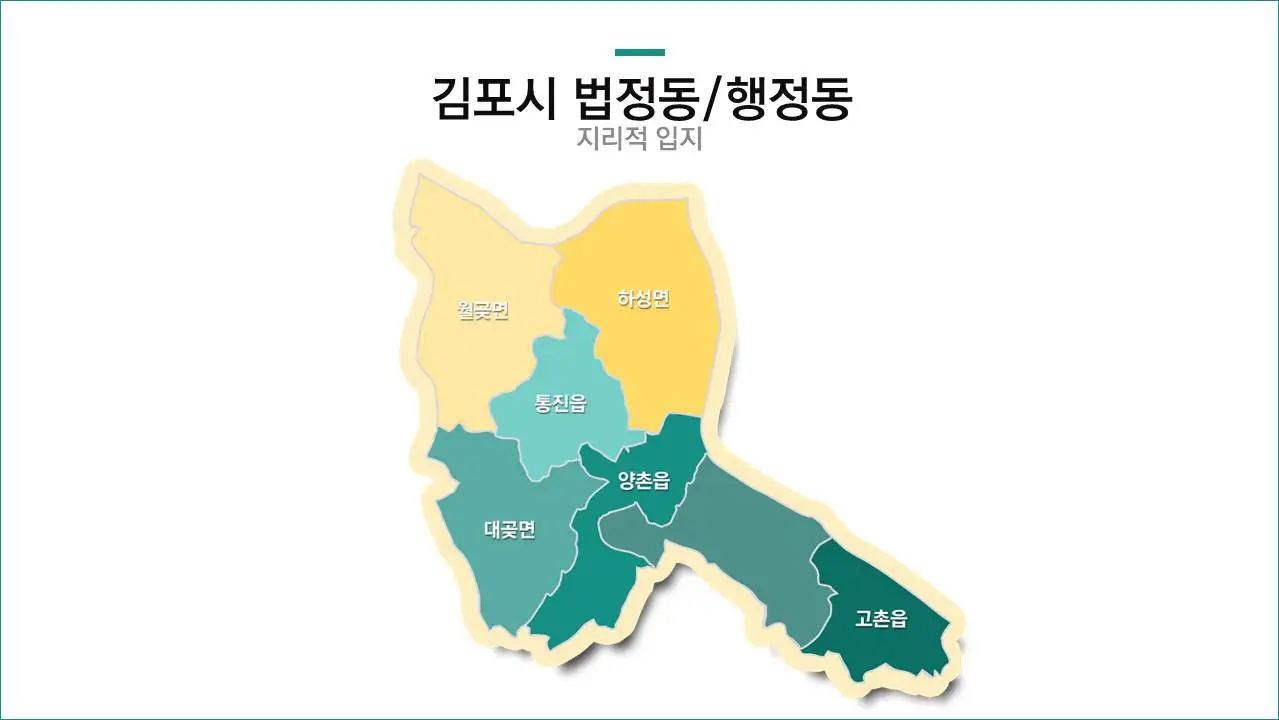 먼저 김포시의 법정동과 행정동을 살펴보겠습니다. 많은 분들에게 익숙한 '김포공항'이 위치한 고촌읍이 있고, 그 옆으로 김포시청과 아파트 단지가 들어서있는 사우동과 풍무동이 자리하고 있는데요. 사우동과 풍무동 옆, 즉 양촌읍까지는 서울과의 접근성이 좋아서 버스와 자차를 이용해 서울로 출퇴근하시는 분들이 많이 거주하는 양상입니다.