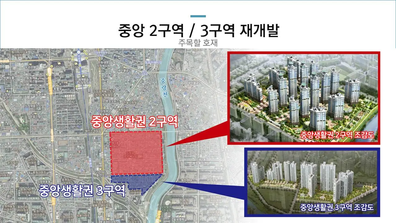 의정부 2구역과 3구역은 현재 재개발 사업이 활발하게 진행되고 있습니다. 2구역은 현재 이주와 철거가 완료되었고, 3구역은 90% 정도가 이주를 마친 상황인데요. 2구역에는 2400세대의 대단지 아파트들이 조성될 예정입니다. 학군들과의 접근성이 떨어지는 의정부동에는 재개발 부지에 학교들이 들어올 계획이라고 하네요.