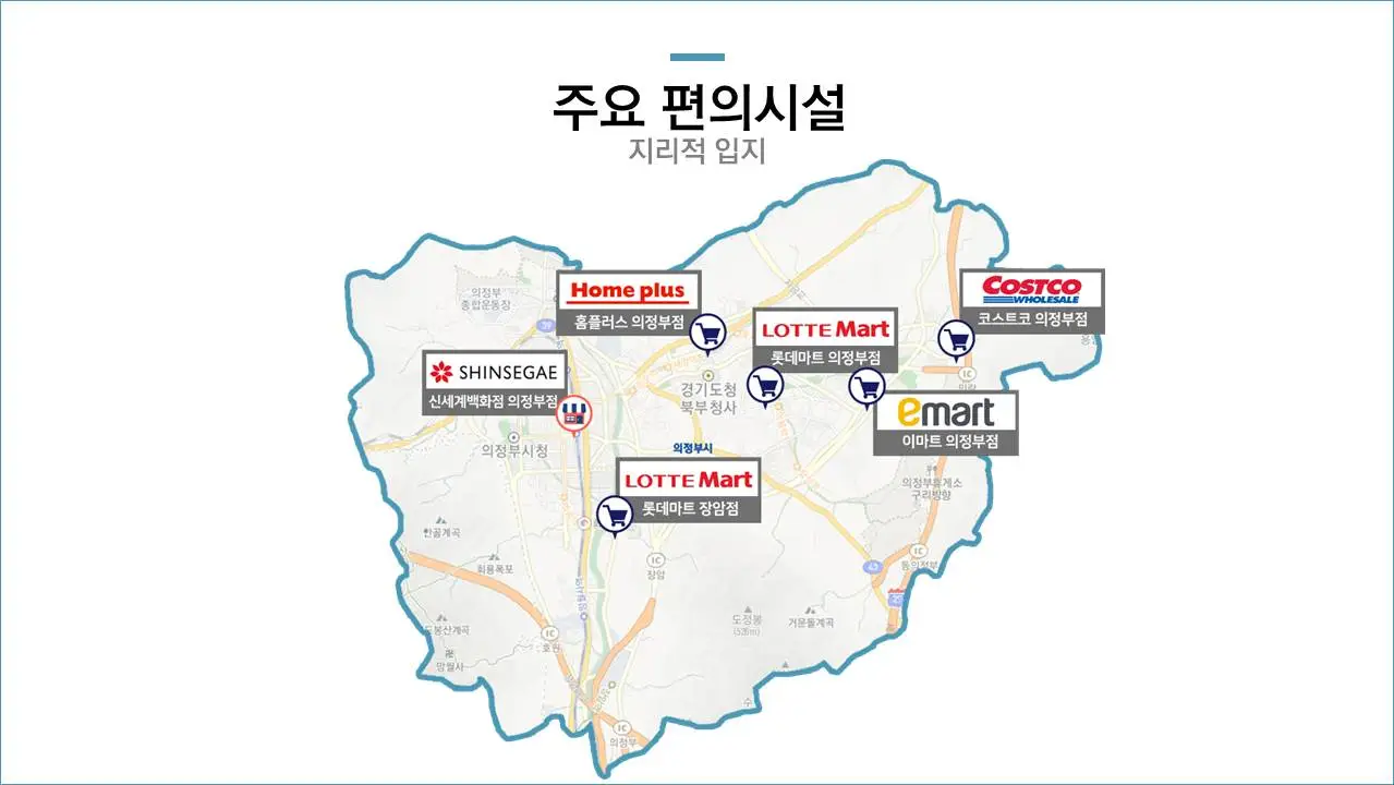 코스트코를 비롯해 의정부역 신세계백화점, 홈플러스 등 다양한 편의시설을 고루 이용할 수 있는데요. 의정부내 대표적인 재래시장인 제일시장을 제외하면 재래시장은 그리 많지 않은 편입니다.
