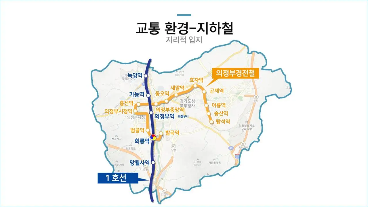 이처럼 의정부는 지하철이나 고속도로 등 다방면의 교통 접근성이 좋은 지역인데요. 자차, 버스, 지하철 등 다양한 교통수단을 이용할 수 있는 교통인프라가 잘 갖춰져 있습니다.