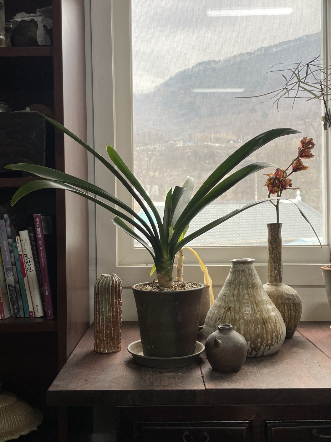 그중 특히 은규는 식물을 너무 사랑했다. 지금 그녀의 집은 농원에 버금갈 정도로 희귀하고 다양한 식물들이 있다. 2014년인가 2015년쯤 양산 본가에서 키우던 군자란 한뿌리를 은규에서 준 적이 있었다. 까맣게 잊고 있었는데 결혼식 전날 은규에게 사진을 받았다. 군자란에 꽃이 피었다고!