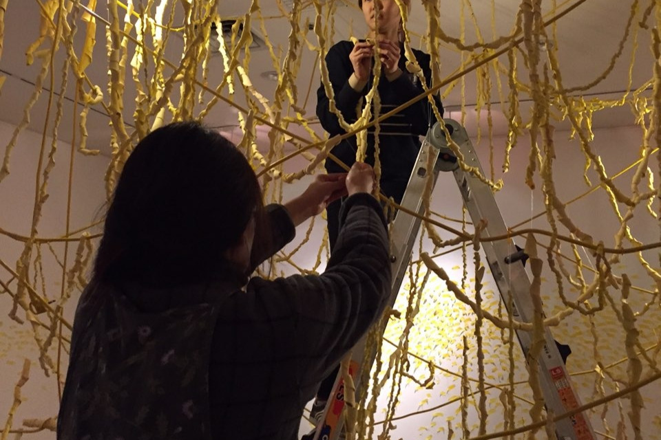 결핍의 부산물인 노란색 꼬인 유닛들을 삽으로 퍼담을 수 있을 정도로 만들었고, 일일이 낚싯줄에 꿰어 온 실기실에 주렁주렁 매달아 놨다.