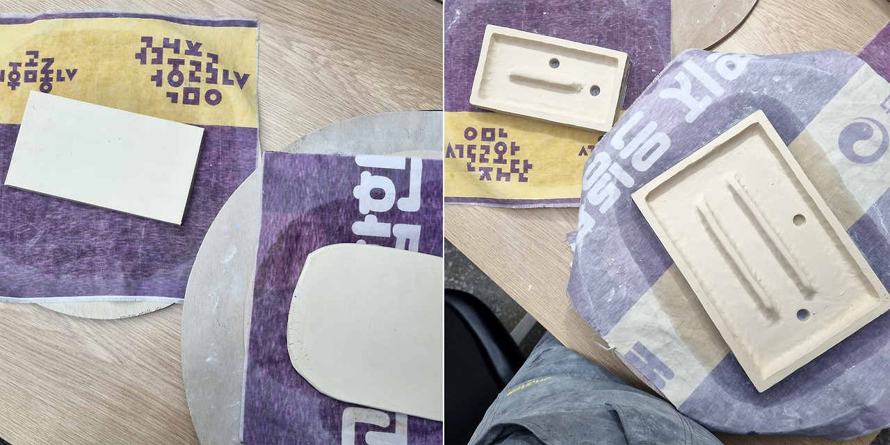 흙 덩어리를 밀어 판을 만들고 흙 벽을 쌓아 준다. 우글우글하게 손 가는 대로 만드는 건 자신 있는데, 네모 반듯하게 만드는 건 아직도 자신이 없다. 예전엔 우굴쭈굴한 형태를 '손 맛'이라 우기며 뻐기는 것이 그나마 가능했다. 금속 작업할 때도 딱 떨어지는 직선보다 자연스러운 형태의 곡선을 선호했는데, 고집스러운 내 성격엔 곡선보다 퍽퍽한 직선이 더 잘 어울리는 것 같기도 하다.