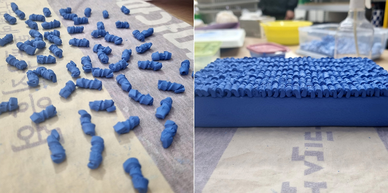 유독 내 작업이 예뻐보일 때가 있다. 오늘 기분이 좋아서 그런가 파랑 빠그리들이 올망졸망 귀여워보였다. 내 손에 만져지는 촉촉함도 좋았고, 줄줄이 반듯하게 완성된 모습도 마음에 들었다.