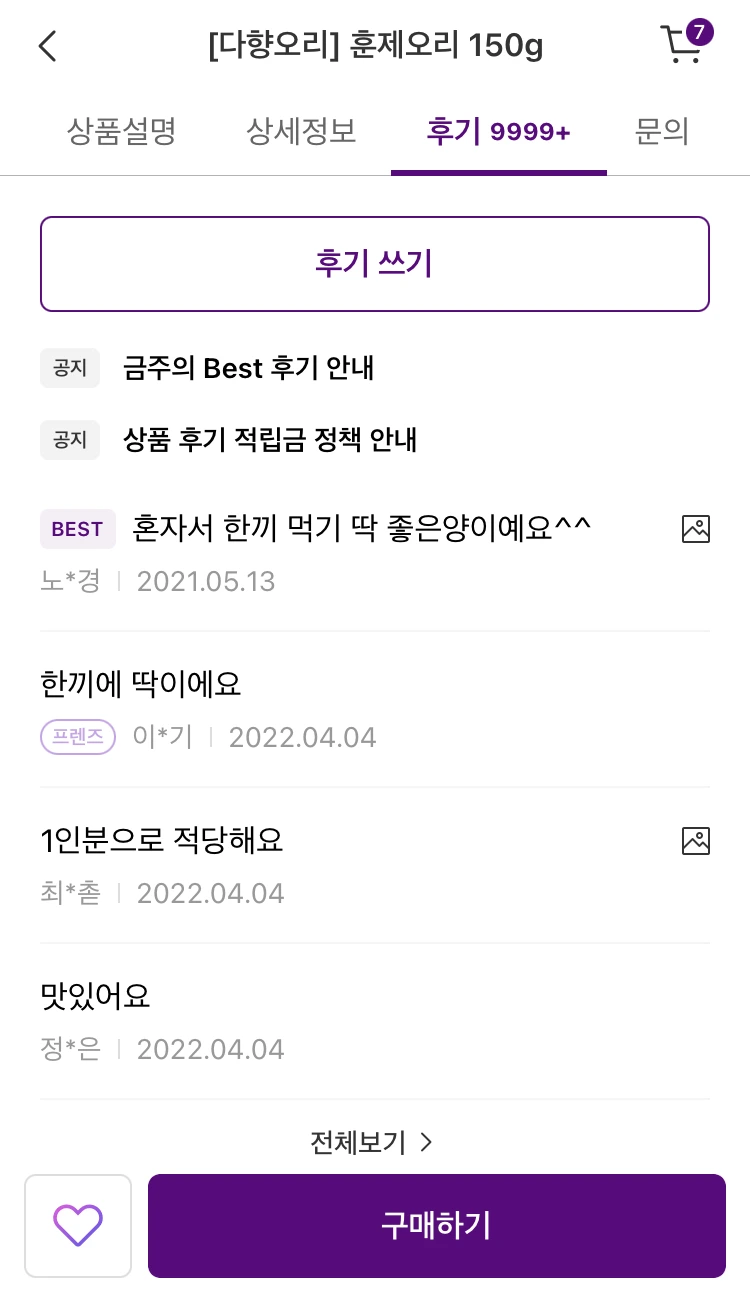 다만, 후기가 최신순으로 정렬되어 있어(베스트 리뷰 제외) 긍정적인 리뷰와 부정적인 리뷰를 구분하기 어렵다. 별점 등록을 한다면 쉽게 원하는 후기를 선별해서 볼 수 있을 것 같다.
