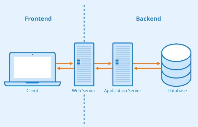 이때 클라이언트 부분을 묶어 '프론트엔드', 서버 부분을 묶어 '백엔드'로 나누고 각 부분을 담당하는 개발자를 프론트엔드 개발자, 백엔드 개발자, 모두 담당하는 개발자를 풀 스택 개발자라고 부른다.