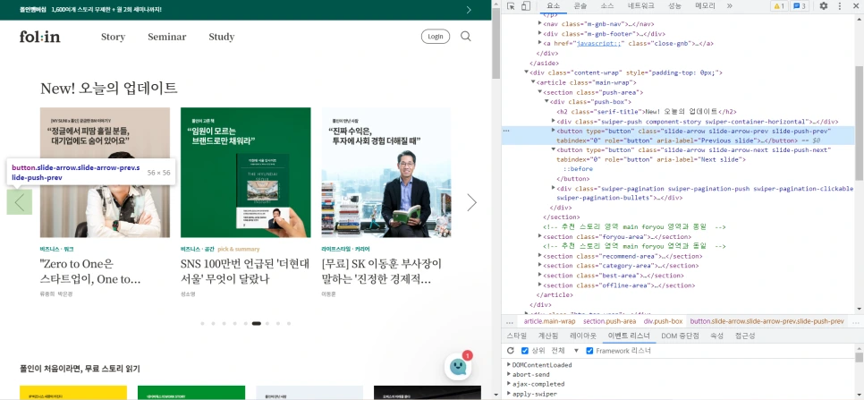 <section> 영역에서 왼쪽, 오른쪽 방향으로 이동할 수 있는 화살표 버튼을 누르면 다른 슬라이드를 확인할 수 있다.
