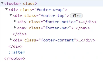 6) <footer> : 화면의 구조 중 가장 하단에 위치하고, 회사 소개 / 저작권 / 약관 / 제작 정보들이 들어간다.