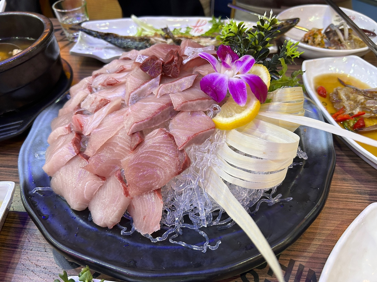 저녁 메뉴는 대방어. 친구가 맛있다고 유명한 집이라고 해서 따라갔는데 대기가 너무 길었다. 40분이나 기다려야 한다는 사장님의 말에 우린 미련 없이 다른 곳을 찾아봤다. 맛집에서 꼭 줄을 서지 않는다는 것도 같았다. 다행히 주변에 '빛나는바다'라는 횟집이 있었다. 가게 이름 마음에 드는데?라고 생각하며 2층으로 올라갔다.