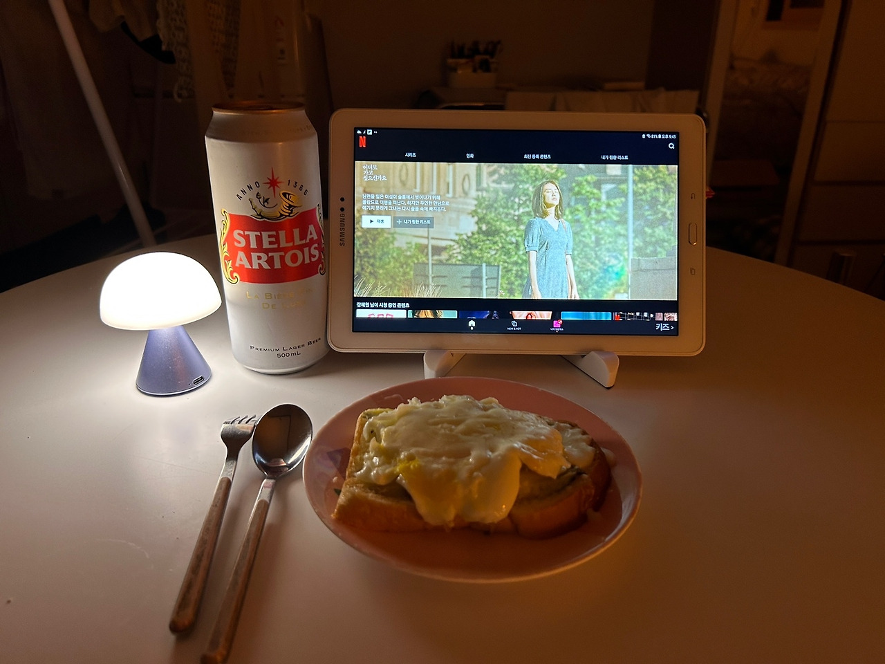 며칠 전, 오랜만에 시원한 캔맥주가 생각나 혼술을 했다. 편의점에서 내가 제일 좋아하는 맥주인 스텔라를 샀고 에어프라이어로 치즈 토스트를 만들었다. 나는 치킨과 맥주 조합도 좋아하지만 빵과 맥주 조합도 무척이나 좋아한다. 칼로리 폭탄인 조합이지만 직접 만든 토스트나 도넛, 에그타르트 같은 빵과 술을 곁들이면 그 자체로 행복이다. 맥주나 와인은 의외로 케잌과도 잘 어울린다. 호두나 캐슈넛, 아몬드 같은 견과류는 간단히 마시고 싶을 때 맥주 한 캔과 함께하면 환상의 짝꿍이다.