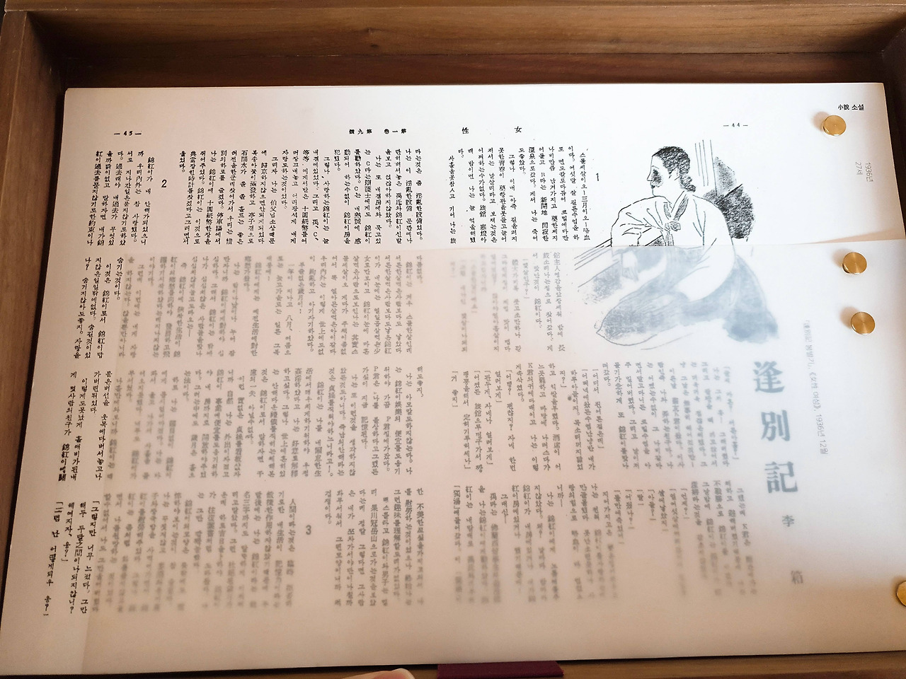 랍을 한 칸씩 열면 이상이 썼던 글의 복사본을 살펴 볼 수 있다.